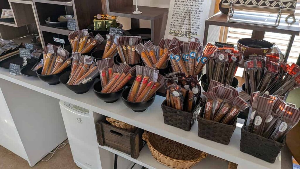 テレビなどにも取り上げられた人気の富士山マドレーヌ(260円)。和紅茶・アーモンド・烏龍茶・豆乳・お酒・米粉・竹炭などの種類が用意されています。